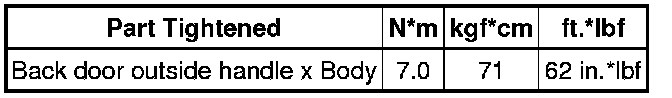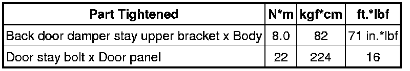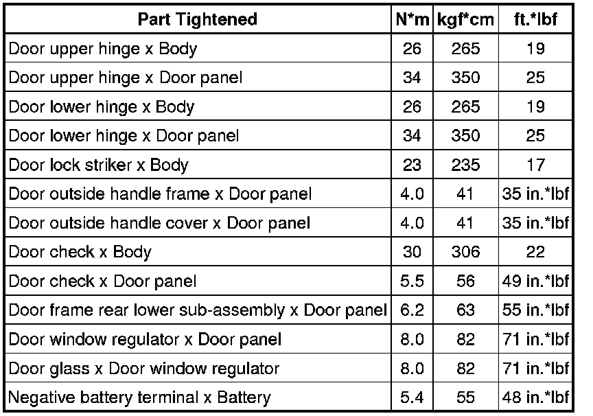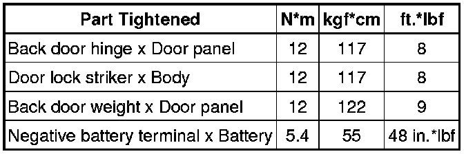 SPECIFICATIONS: DOOR / HATCH: TORQUE SPECIFICATIONS