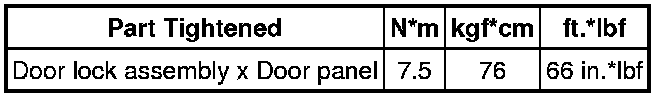 SPECIFICATIONS: DOOR LOCK: TORQUE SPECIFICATIONS