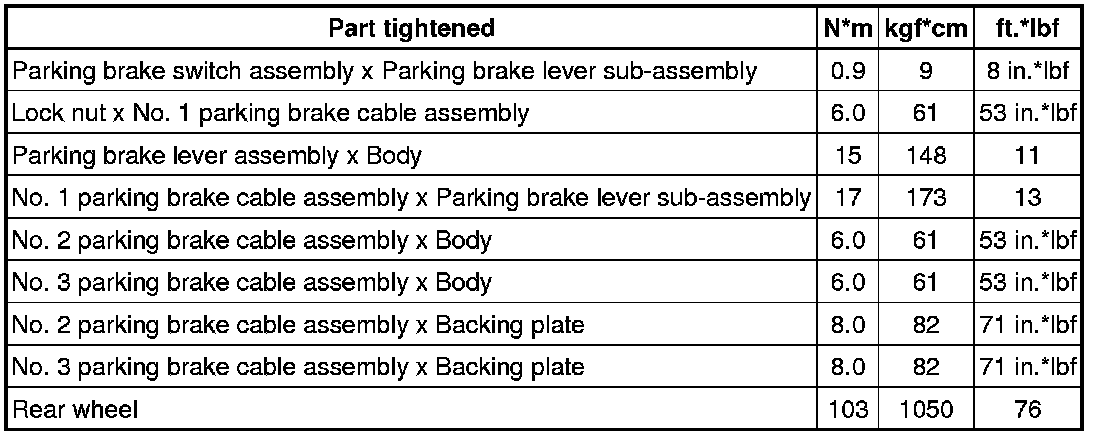 SPECIFICATIONS: PARKING BRAKE: TORQUE SPECIFICATIONS
