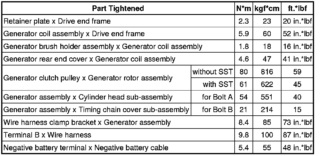 SPECIFICATIONS: 1NR-FE BATTERY / CHARGING: TORQUE SPECIFICATIONS