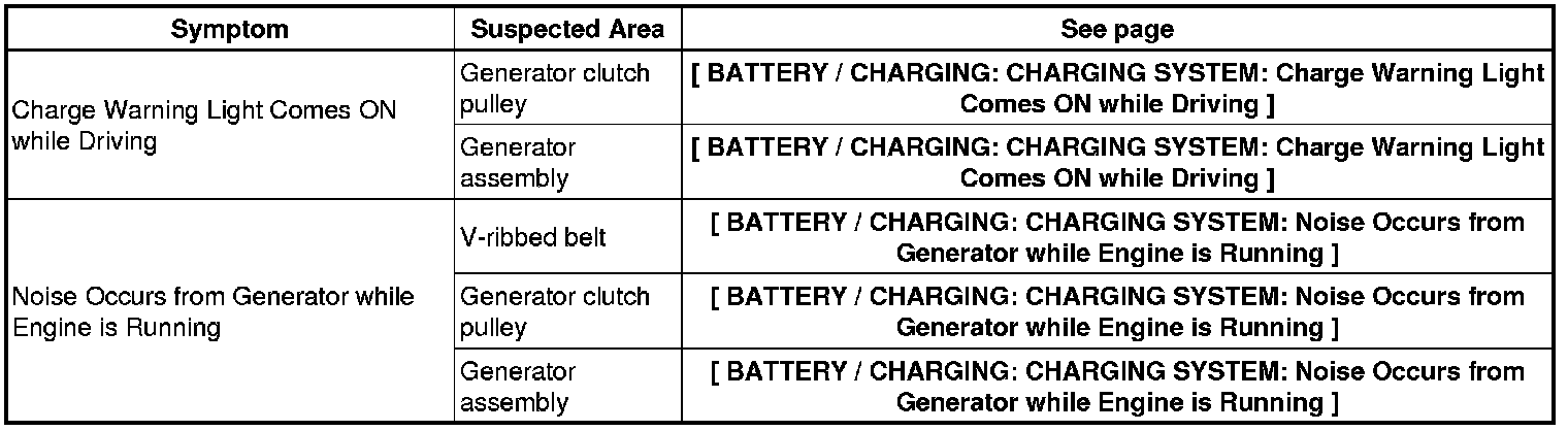 1NR-FE BATTERY / CHARGING: CHARGING SYSTEM: PROBLEM SYMPTOMS TABLE