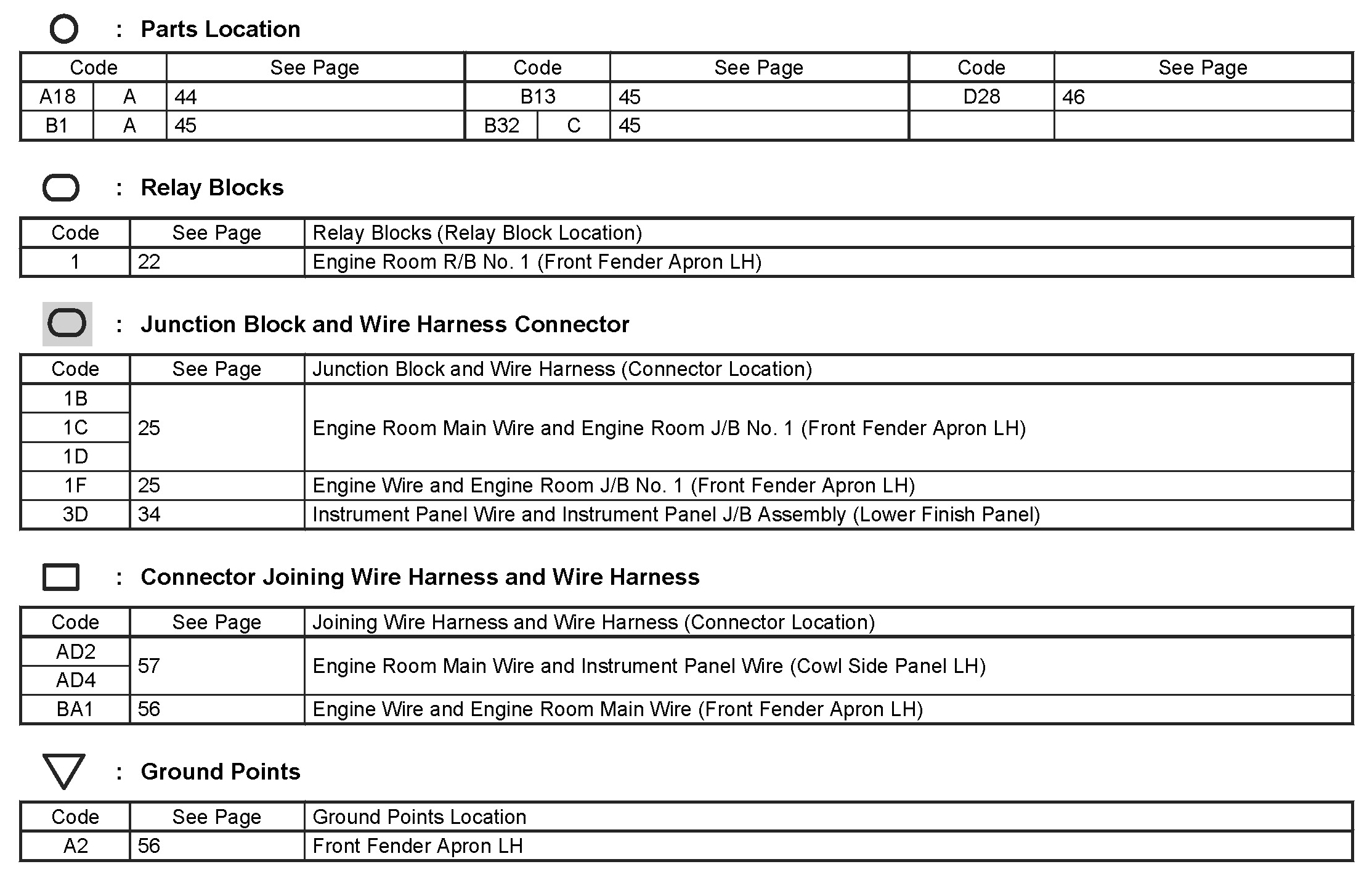 Locations: The locations of components, connectors, ground points, and splices referred to within these diagrams can be found at Vehicle Locations. Locations
