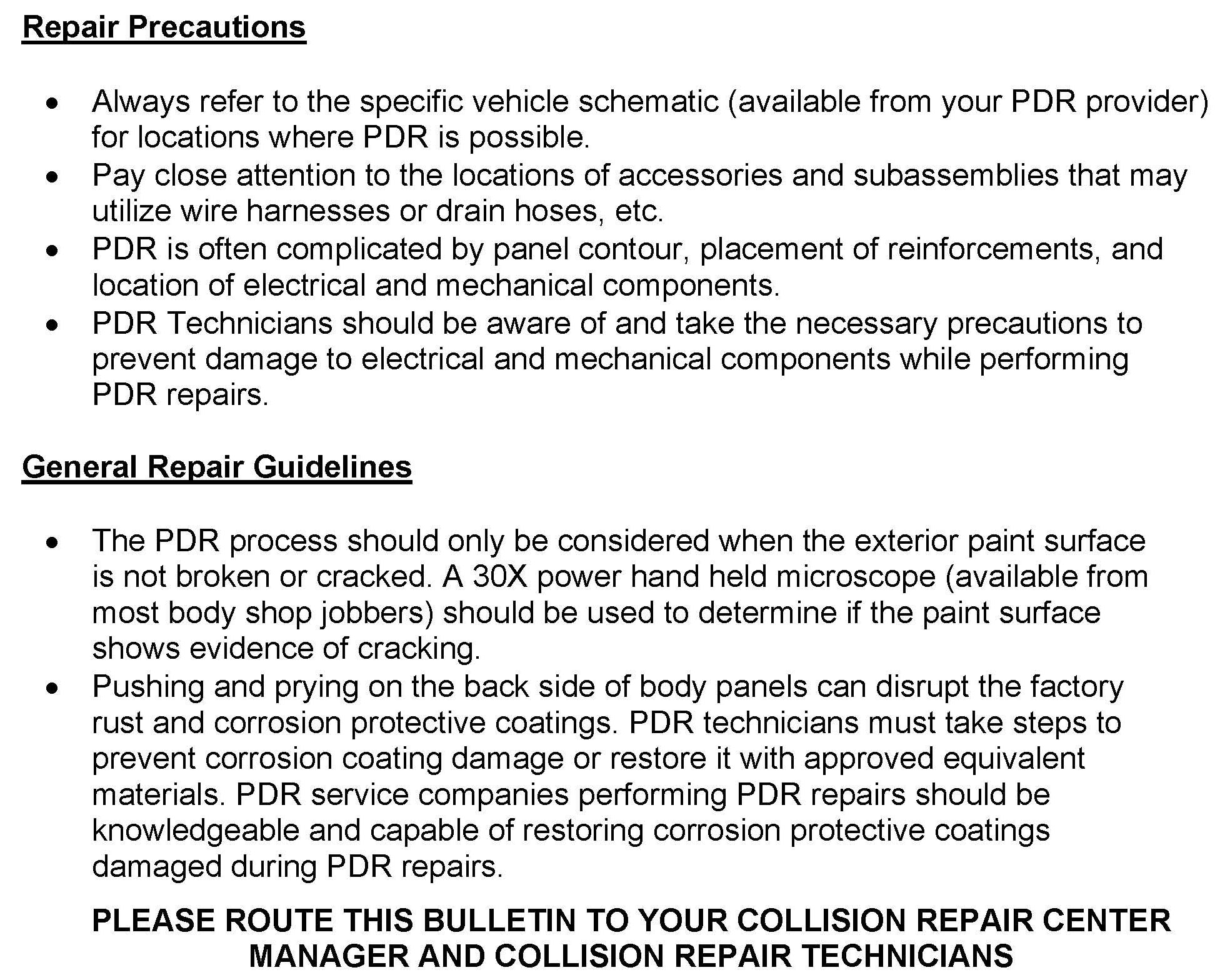 Body - Paintless Dent Repair Guidelines