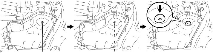 (c) Use a socket hexagon wrench (6 mm) to remove the drain plug and gasket, and then check the fluid condition.