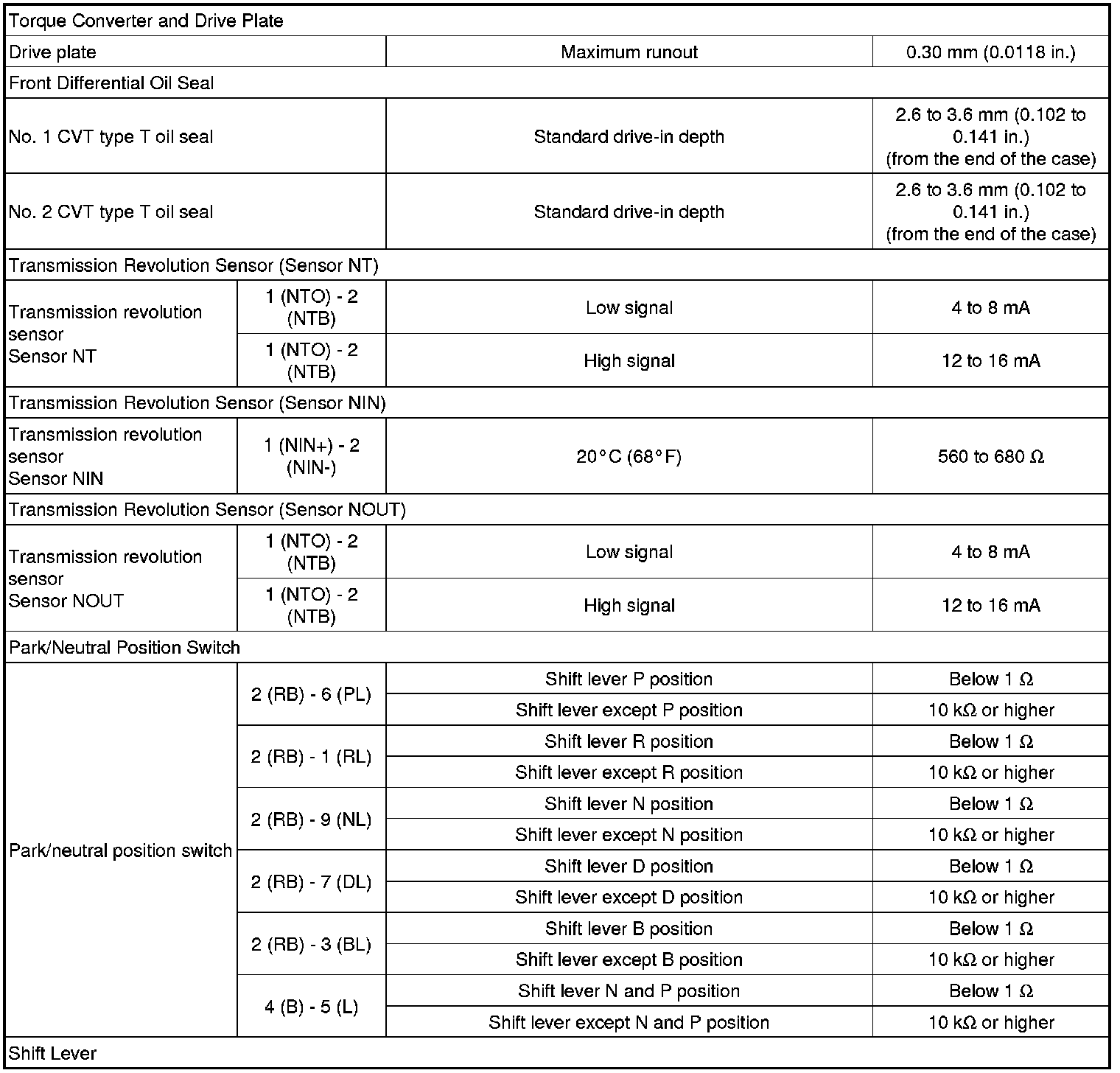 SPECIFICATIONS: K41B CVT: SERVICE DATA