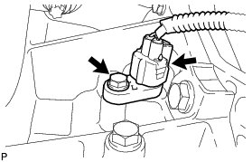 (b) Remove the bolt and then remove the transmission revolution sensor (NOUT) from the CVT.