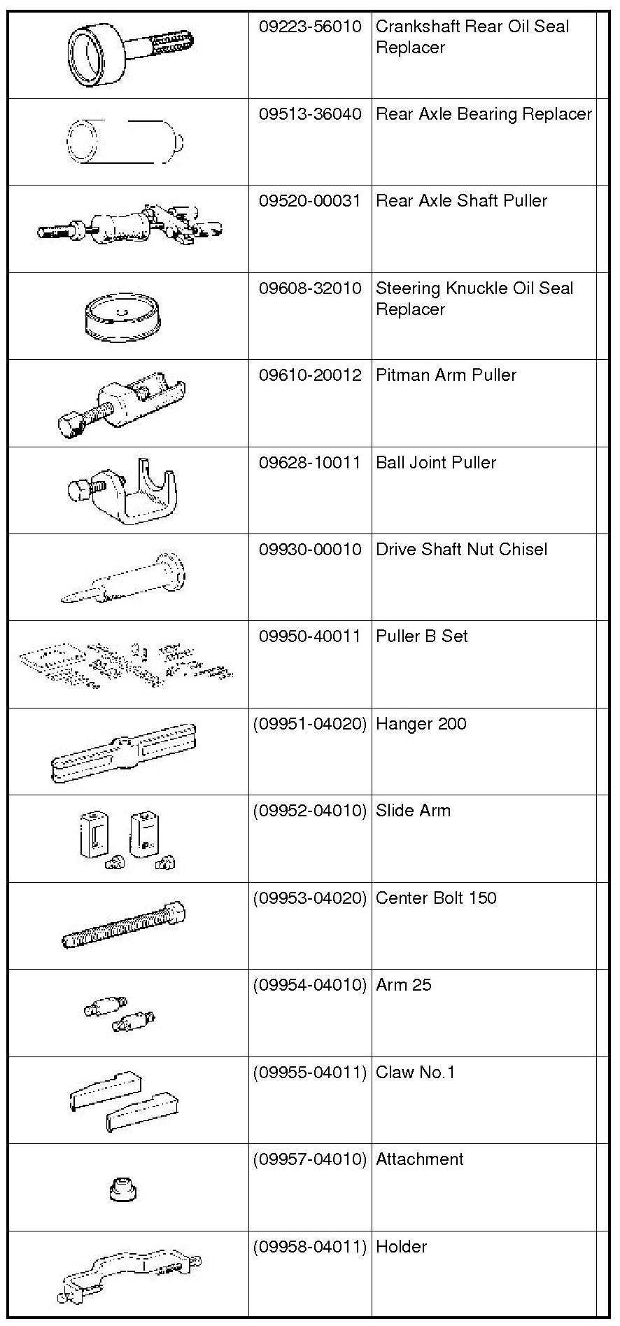 PREPARATION: AXLE AND DIFFERENTIAL: SST