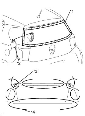 (b) Apply protective tape to the outer edge of the back door glass, as shown in the illustration.