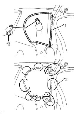 (a) Apply protective tape to the outer circumference of the quarter window, as shown in the illustration.