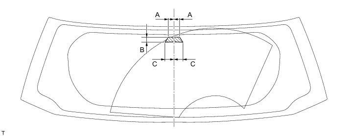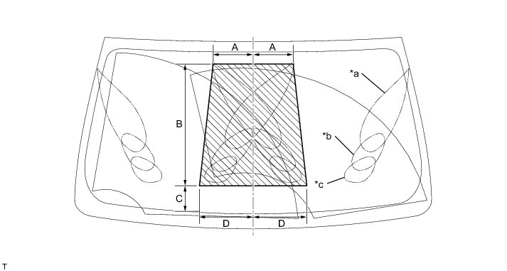 Washer fluid hits the windshield in the areas shown in the illustration.