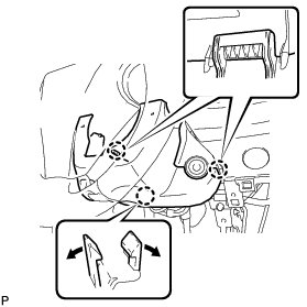 (c) Insert your fingers into the tilt lever opening of the steering column lower cover and disengage the claw.