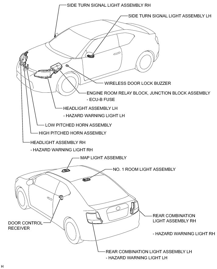 DOOR LOCK: WIRELESS DOOR LOCK CONTROL SYSTEM (W/O Smart Key System): PARTS LOCATION
