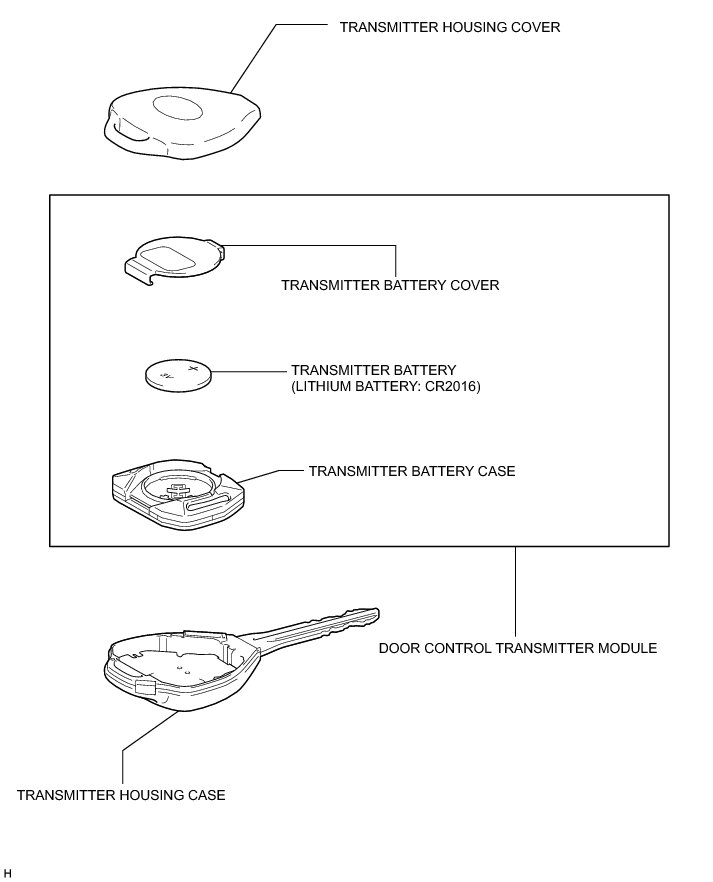 DOOR LOCK: DOOR CONTROL TRANSMITTER (W/O Smart Key System): COMPONENTS