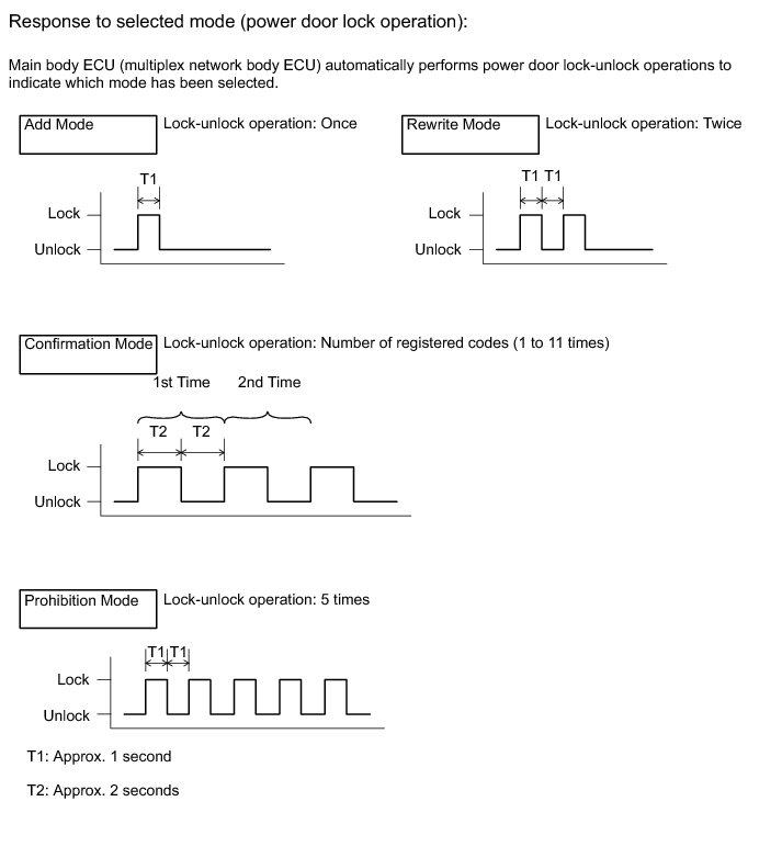 * In confirmation mode, the lock-unlock operation will occur once for each recognition code that has been registered. For example, if 2 recognition codes have been registered, the lock-unlock operation will occur twice.