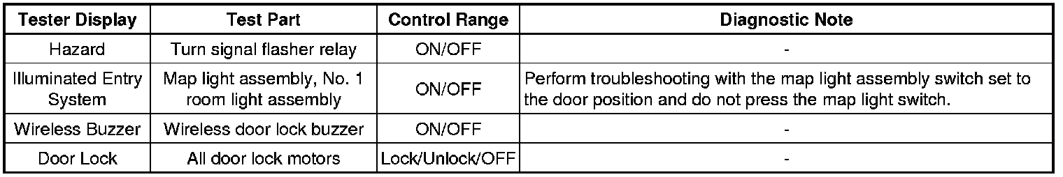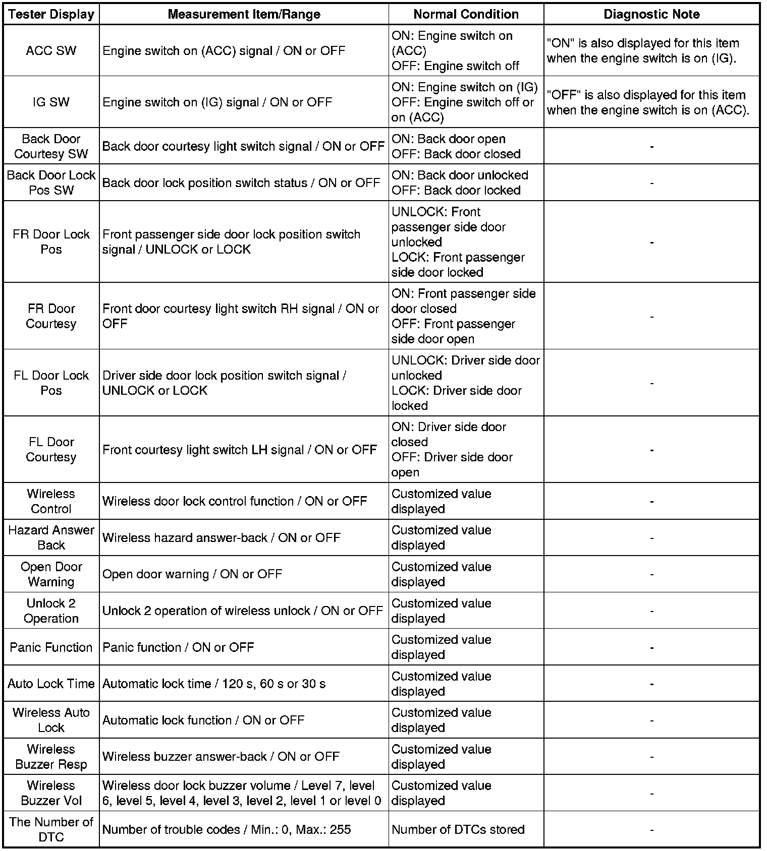DOOR LOCK: WIRELESS DOOR LOCK CONTROL SYSTEM (W/ Smart Key System): DATA LIST / ACTIVE TEST