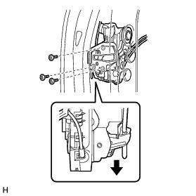 (b) Slide the front door lock assembly downward, pull out the front door lock open rod from the outside handle frame, and remove the front door lock assembly and cables as a unit.