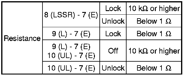 SPECIFICATIONS: DOOR LOCK: SERVICE DATA