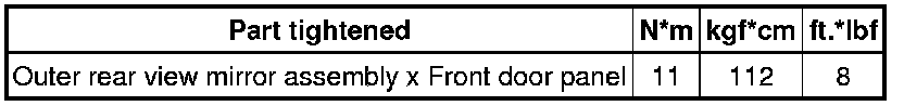 SPECIFICATIONS: MIRROR (EXT): TORQUE SPECIFICATIONS