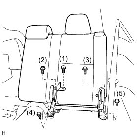 (d) Temporarily install the rear seat 3 point type belt together with the rear center seat outer belt floor anchor with the bolt.