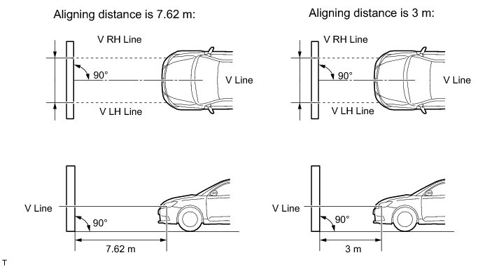 * Create a 7.62 m (25.0 ft.) distance between the vehicle (headlight bulb center) and wall.