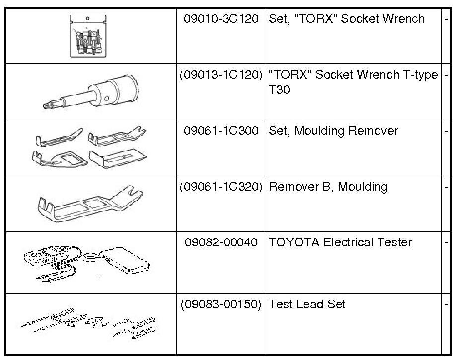 PREPARATION: LIGHTING (INT): RECOMMENDED TOOLS