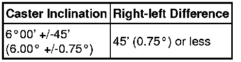 Standard Caster Inclination (Unloaded Vehicle):