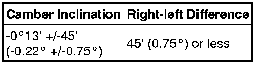 Standard Camber Inclination (Unloaded Vehicle):