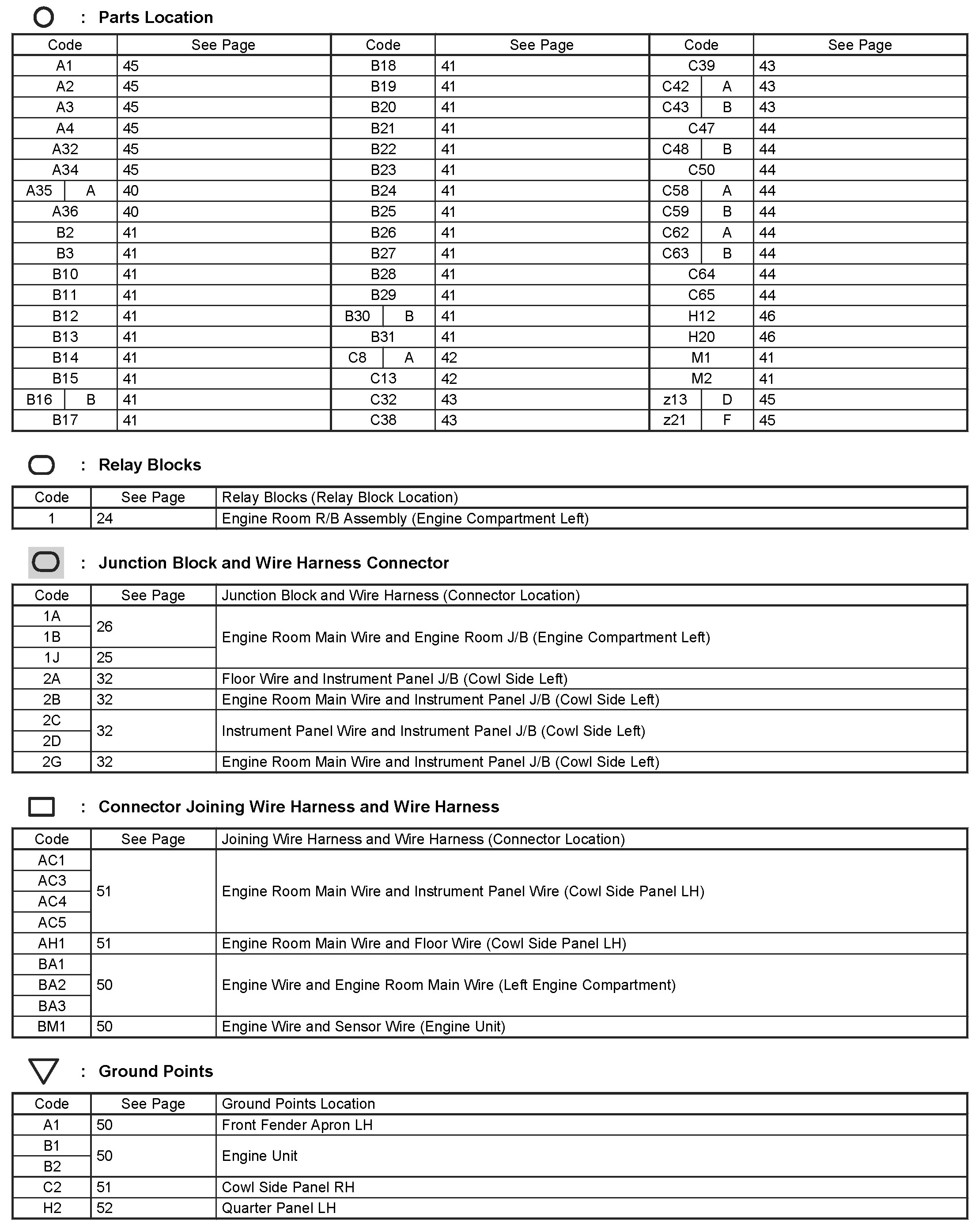 Locations: The locations of components, connectors, ground points, and splices referred to within these diagrams can be found at Vehicle Locations. Locations