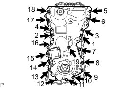 Tighten the 17 bolts and 2 nuts in the sequence shown.