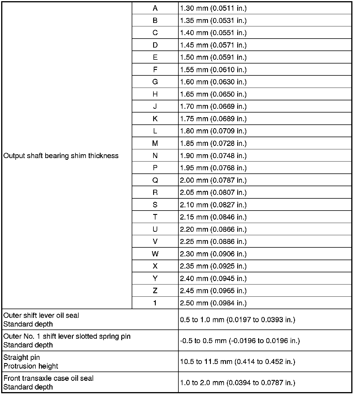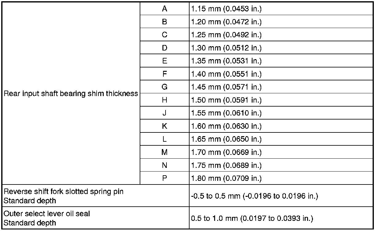 SPECIFICATIONS: EB60 MANUAL TRANSMISSION / TRANSAXLE: SERVICE DATA