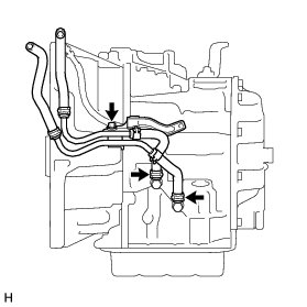 (a) Disconnect the No. 1 oil cooler inlet hose and No. 1 oil cooler outlet hose from the automatic transaxle assembly.