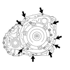 (a) Remove the 9 bolts, and then remove the automatic transaxle assembly from the engine assembly.