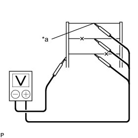 If there is approximately 10 V, the wire may be faulty between the center of the wire and the wire end on the battery side. If there is no voltage, the wire may be faulty between the center of the wire end and the wire end on the ground side.
