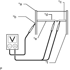 (d) Place the voltmeter positive (+) lead against the defogger wire on the battery side.