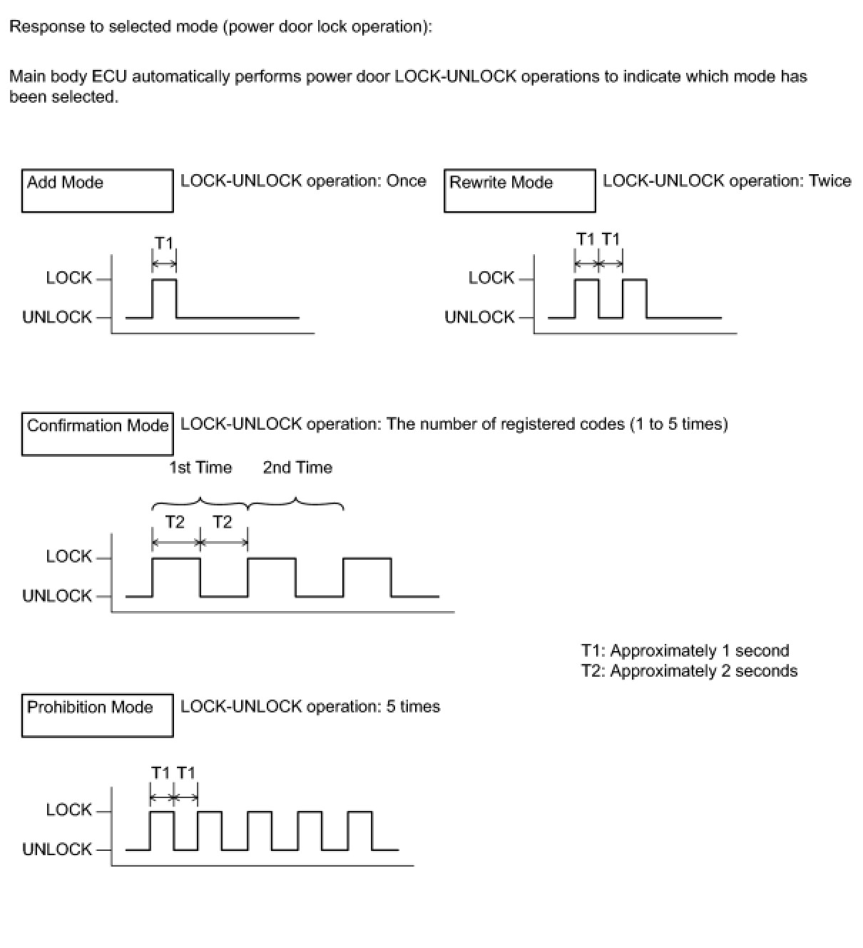 * In the confirmation mode, LOCK-UNLOCK operation will occur once for each recognition code that has been registered. For example, if 2 recognition codes have been registered, LOCK-UNLOCK operation will occur twice.