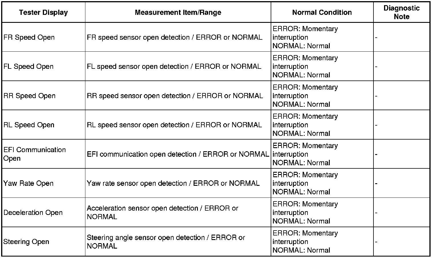 * The ERROR display on the Techstream remains on for 1 second after the harness signal changes from momentary interruption (open circuit) to normal condition.