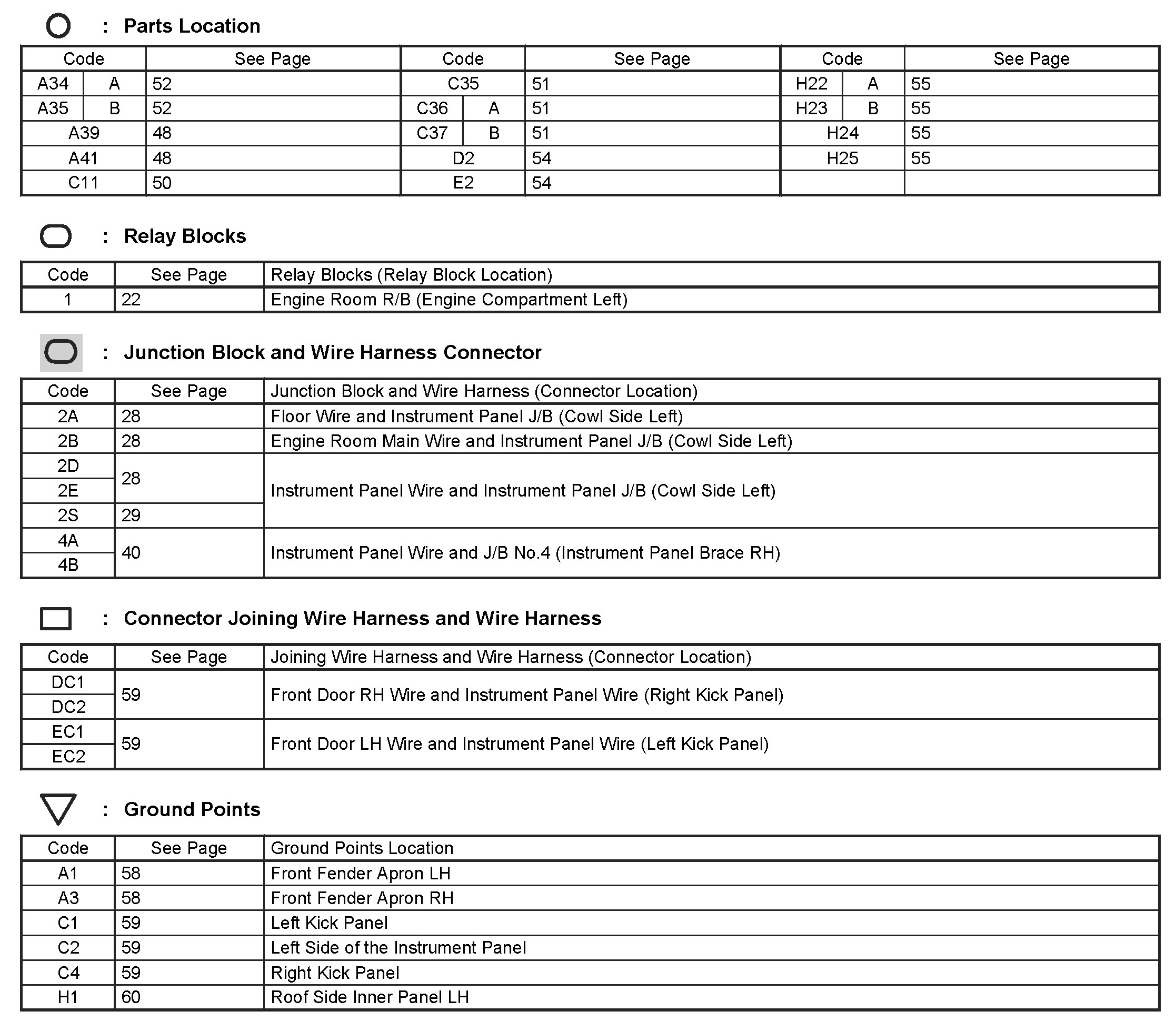 Locations: The locations of components, connectors, ground points, and splices referred to within these diagrams can be found at Vehicle Locations. Locations