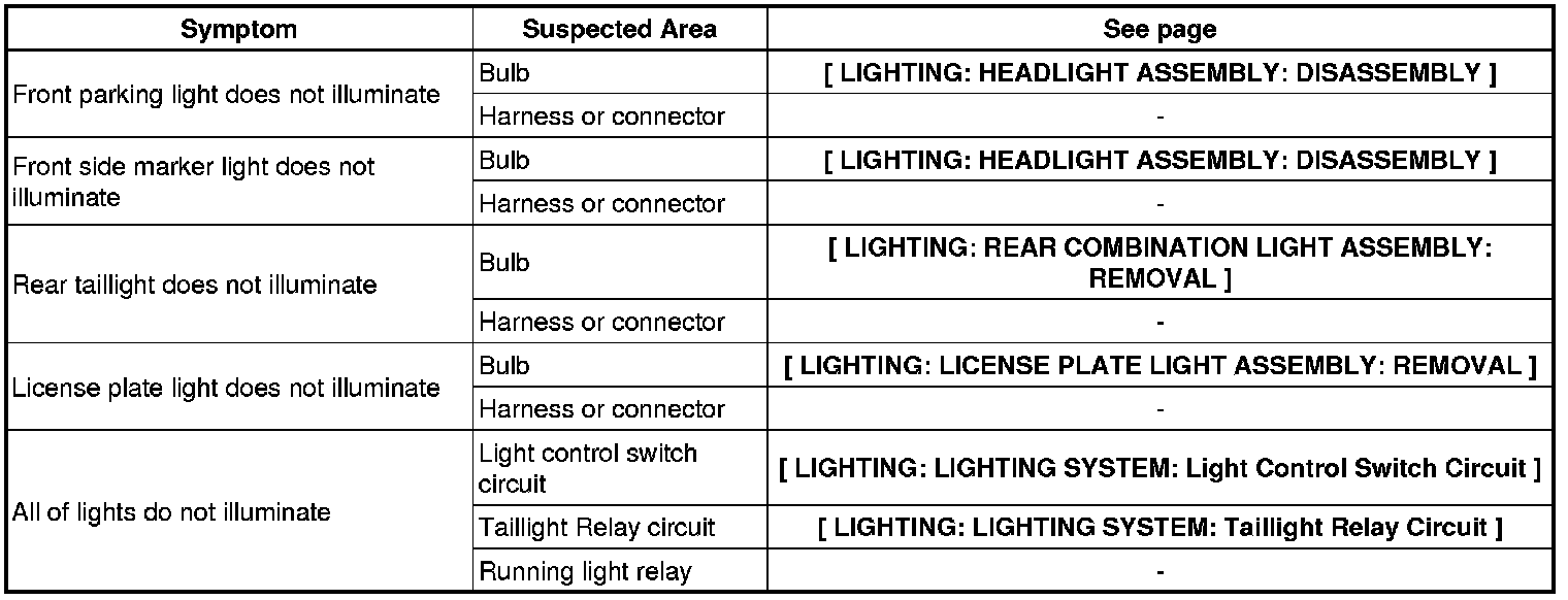 LIGHTING: LIGHTING SYSTEM: PROBLEM SYMPTOMS TABLE