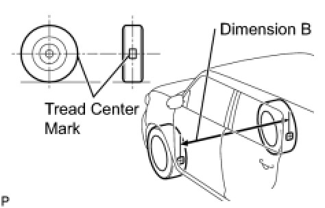 (d) Put tread center marks on the rearmost points of the front wheels and measure the distance between the marks (dimension B).