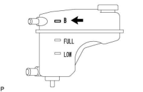 (c) Remove the radiator reserve tank cap, then fill TOYOTA Super Long Life Coolant up to "B" line of reserve tank.