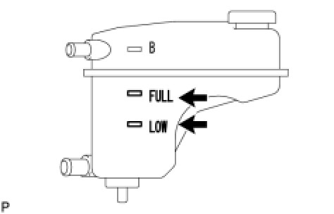 If the coolant level is above the FULL line, drain coolant so that the coolant level is between the FULL and LOW line.