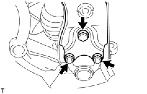(b) Install the steering knuckle with the front axle assembly onto the front shock absorber with the 2 bolts and 2 nuts.