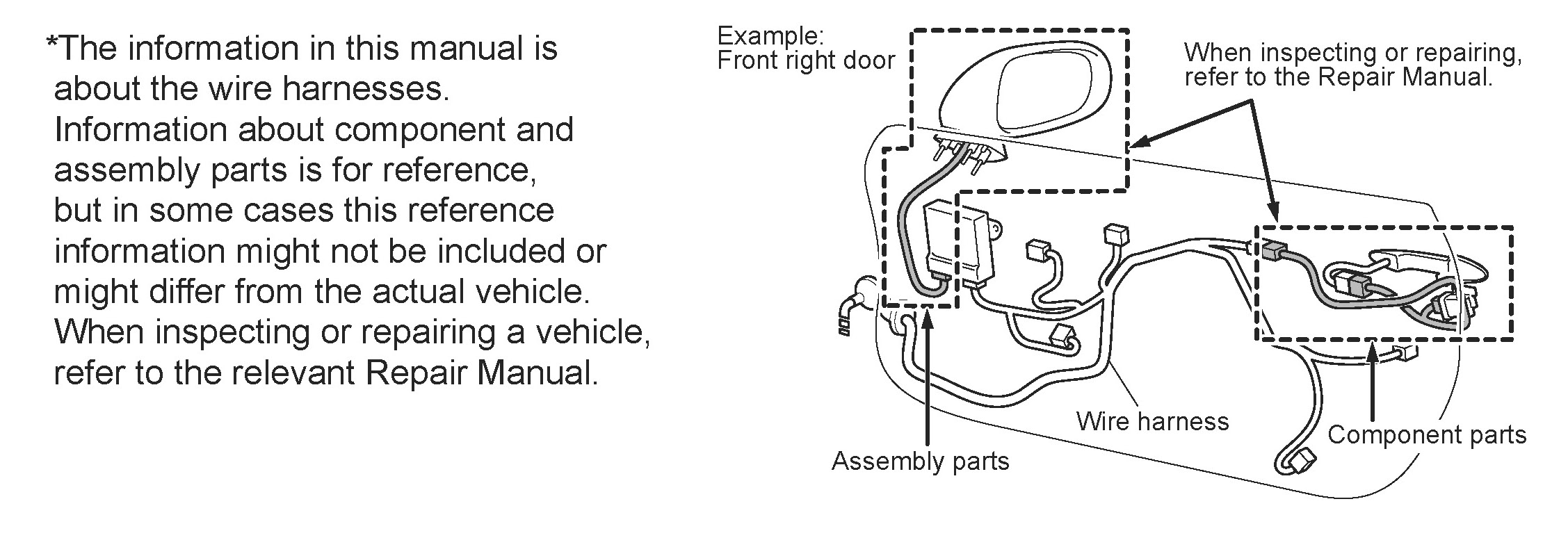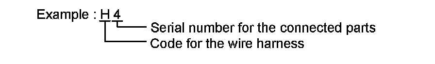 * The first character of the code indicates the alphabetical code allocated to the wire harness, and the second character indicates the serial number of the parts connected to the wire harness.