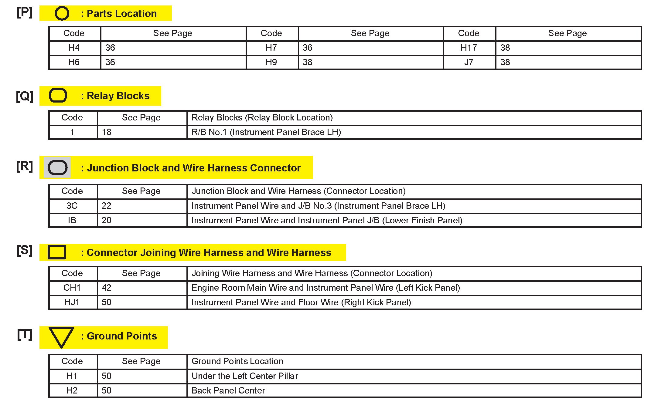 [P] : Indicates reference showing the parts locations in the system circuit on the vehicle.