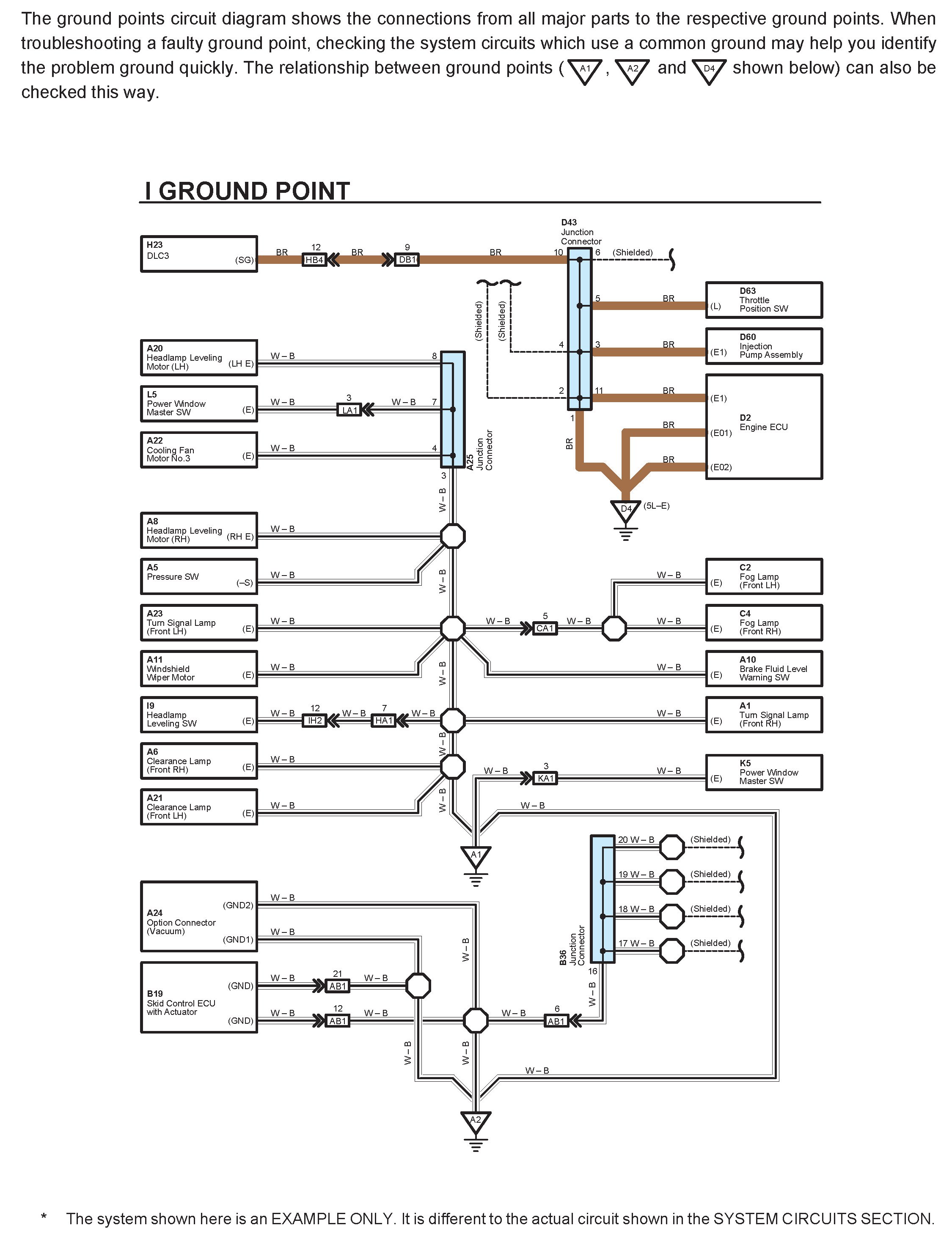 When the circuit operation is understood, begin troubleshooting of the problem circuit to isolate the cause. Use Relay Location and Electrical Wiring Routing sections to find each part, junction block and wiring harness connectors, wiring harness and wiring harness connectors and ground points of each system circuit. Internal wiring for each junction block is also provided for better understanding of connection within a junction block.