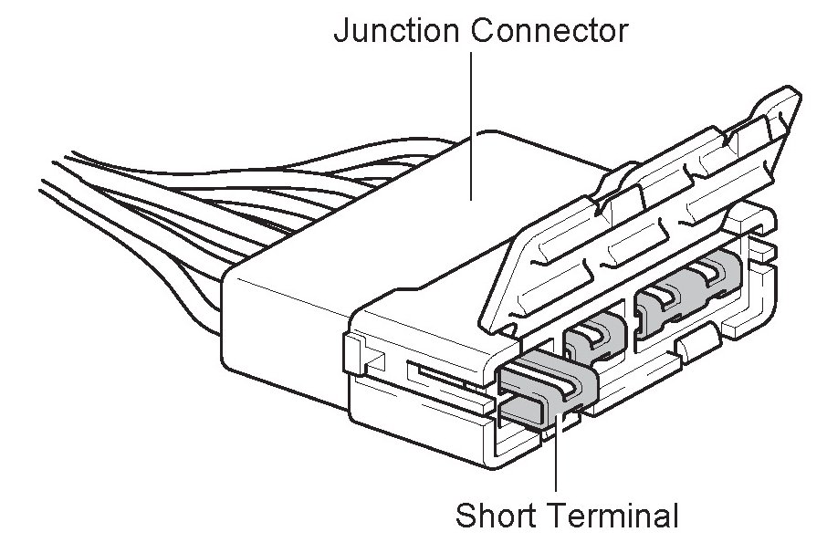 Junction connector in this manual include a short terminal which is connected to a number of wire harnesses. Always perform inspection with the short terminal installed.