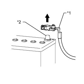 (c) When the battery cable is disconnected, the clock and radio settings and stored DTCs are erased. Therefore, before disconnecting the battery cable, make a note of the settings.
