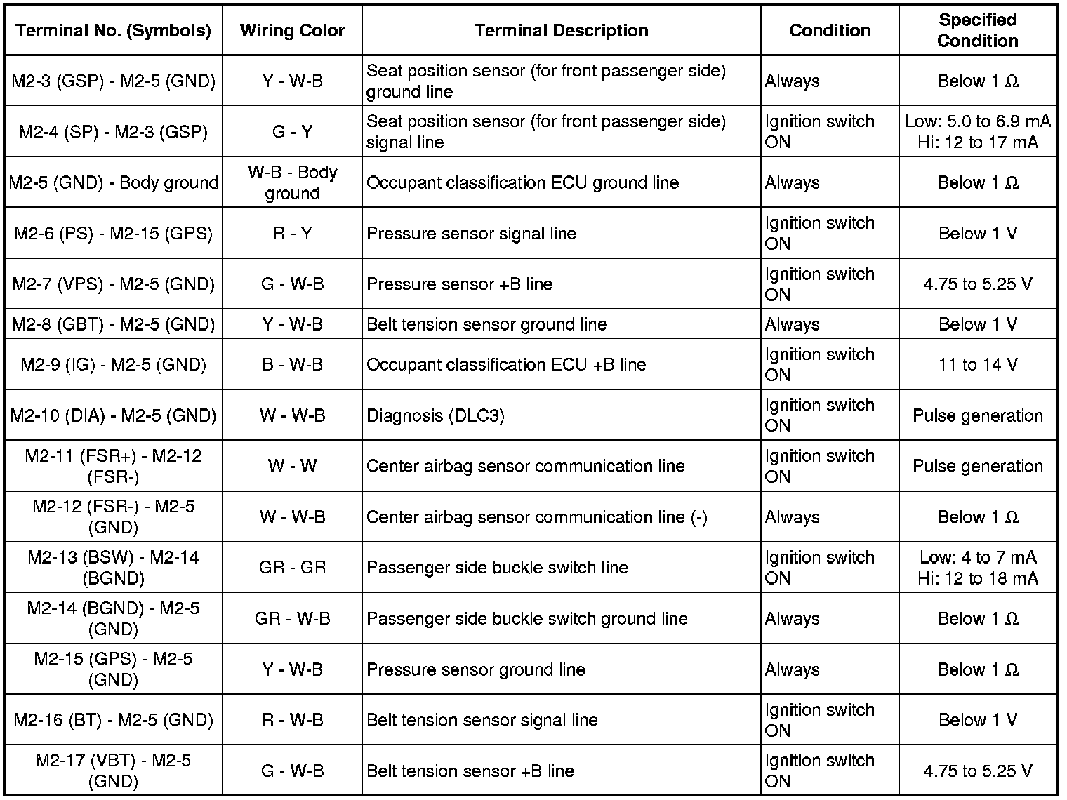 SUPPLEMENTAL RESTRAINT SYSTEM: OCCUPANT CLASSIFICATION SYSTEM: TERMINALS OF ECU