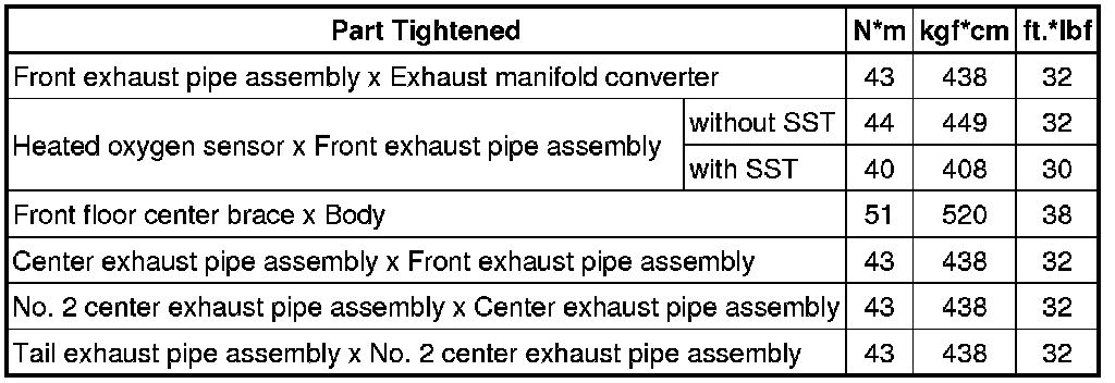 SERVICE SPECIFICATIONS: 2AZ-FE EXHAUST: TORQUE SPECIFICATIONS