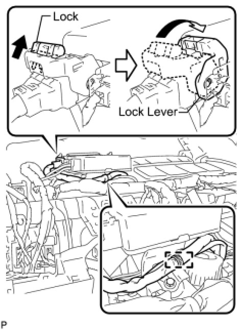 As shown in the illustration, pull out the lock of the lock lever and turn the lock lever to disconnect the connector.